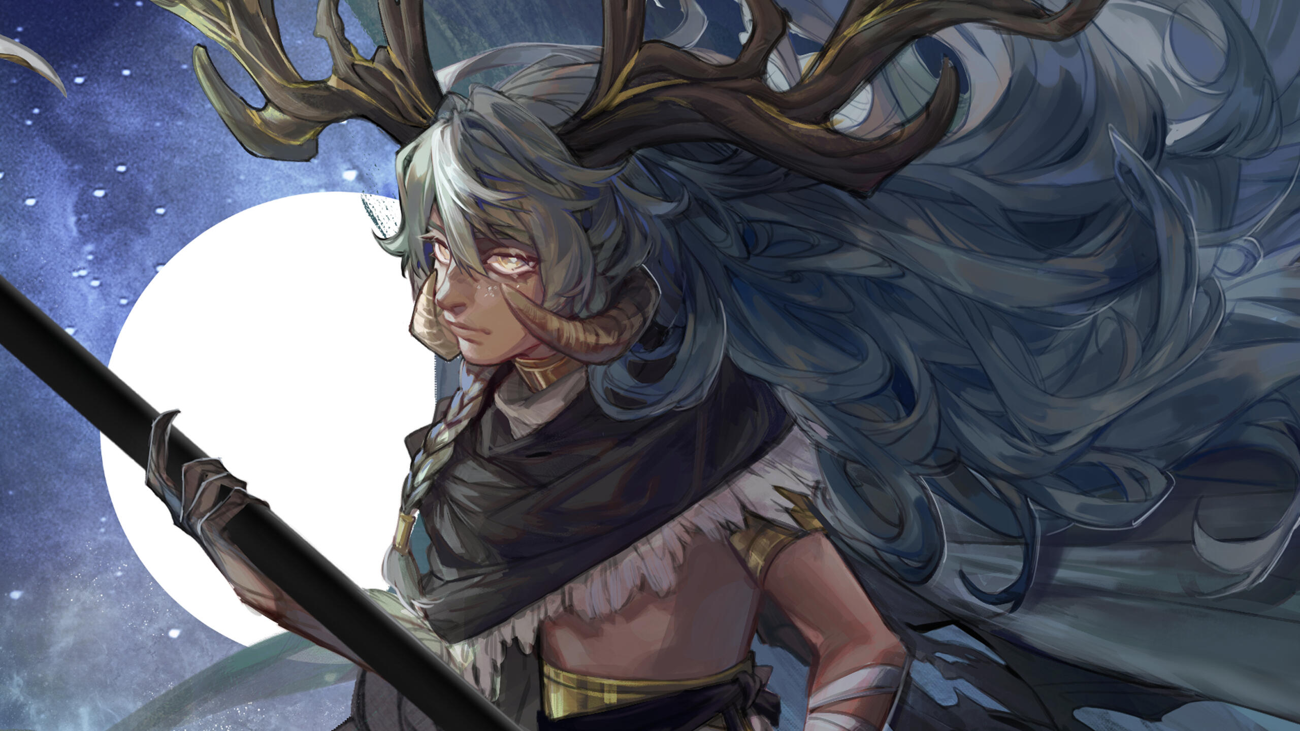 Braune was also another older character I decided to revamp. I wanted to convey the grief and loneliness of this character, as well as the connection to nature through his design. The scythe symbolizes his closeness with death.